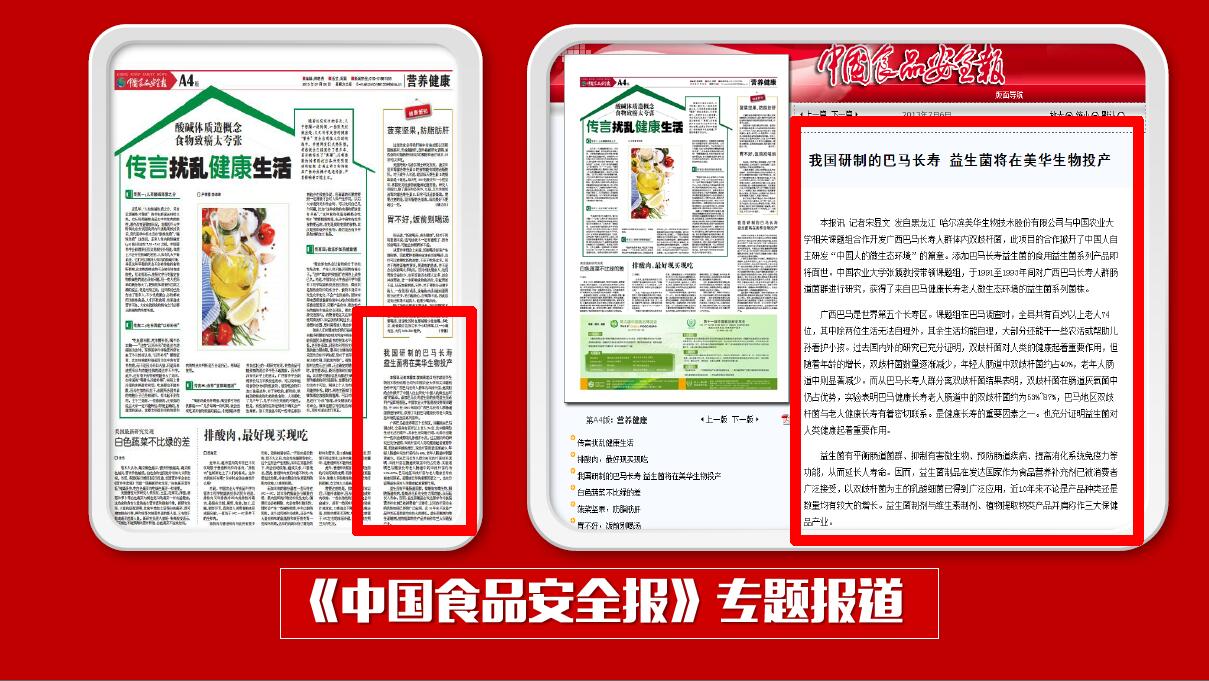 另外,我們的巴馬菌呢,還榮登了中國(guó)食品安全報(bào)專題報(bào)道。