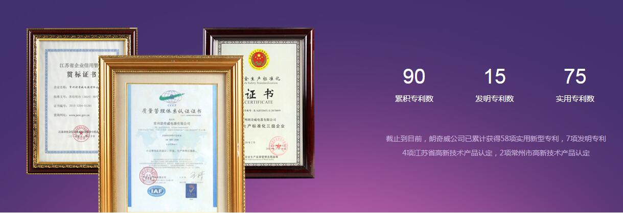 截止到目前,朗奇威公司已累計(jì)獲得56項(xiàng)實(shí)用新型專利,7項(xiàng)發(fā)明專利,3項(xiàng)江蘇省高新技術(shù)產(chǎn)品認(rèn)定,1項(xiàng)常州市高新技術(shù)產(chǎn)品認(rèn)定,并先后獲得“常州市智能工廠”、“江蘇省民營(yíng)科技企業(yè)”、“江蘇省科技型中小企業(yè)”、“江蘇省高成長(zhǎng)中小企業(yè)”、“區(qū)成長(zhǎng)型工業(yè)企業(yè)”、“高新技術(shù)企業(yè)”、“安全生產(chǎn)示范企業(yè)”、“高效微電機(jī)工程技術(shù)研究中心”、“十百千創(chuàng)新型企業(yè)”、“2017年江蘇省兩化深度融合創(chuàng)新試點(diǎn)企業(yè)”等稱號(hào)或認(rèn)定。